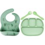 Чотирисекційна силіконова тарілка прилади в кейсі слюнявчик силіконовий 2Life 4 предмети Зелений (vol-10271) (1250745)