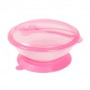 Детская тарелка на присоске Lindo РК 037 с крышкой и ложкой, розовая, 400 мл