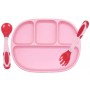 Дитяча чотирисекційна силіконова тарілка та термочутлива ложка-вилка 2Life 700 мл Рожевий (vol-10238) (1251103)