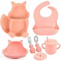 Набір дитячого посуду на присосці 2Life Білка Y12 з 7 предметів Рожевий (v-11319) (1251119)