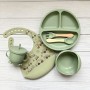 Харчовий силкон абсолютно нешкдливий для дток. Вн не мстить токсинв не виклика алерг. Дитячий посуд з силкону не б'ться, через нього не проходять гостр кра, вн не виклика алергй не мстить шкдливих речовин. Не боться ударв паднь, вн довговчний легко миться. Ви можете використовувати в мкрохвильовй печ, духовц навть холодильнику.