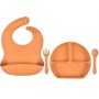 Набір силіконова тарілка три-секційна слинявка ложка вилка 2Life Y25 4 шт Помаранчевий (vol-9909) (1252332)
