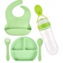 Набір силіконова три-секційна тарілка слинявчик ложка вилка пляшка-ложка 2Life Y3 5 шт Зелений (vol-9929) (1251227)