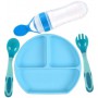 Набір силіконова трисекційна тарілка термочутлива ложка вилка пляшка-ложка 2Life Y9 4 шт Синій (vol-9920) (1251224)
