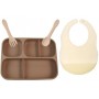 Набір силіконового посуду 2Life 4 предмети Коричневий/Бежевий (vol-10471) (1250839) Набр силконового посуду, розроблений створений з урахуванням всх вимог мам для годування дтей вд 1-го мсяця складаться: Силконова п'яти-секцйна тарлка Ложка Вилка Слинявчик Набр посуду з силкону ма ряд переваг переваг перед ншими видами дитячого посуду: 1. Посуд з харчового силкону не б'ться не ма запаху 2.