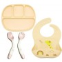 Набір силіконового посуду 2Life тарілка D15 слинявчик Жираф ложка вилка Рожевий у контейнері (vol-10348) (1250734)