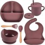 Набір силіконового посуду 2Life Y16 6 предметів Бордовий (v-11144) (1251279) Набр силконового посуду, розроблений створений з урахуванням всх вимог мам для годування дтей вд 4х мсяцв до 5 рокв, складаться з предметв: 1. Трисекцйна силконова тарлка 2.