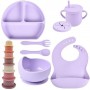 Набір силіконового посуду 2Life Y2 Фіолетовий 7 предметів та іграшка пірамідка Y11 v-11815 (1248038)