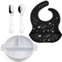 Набор детской посуды 2Life Волна тарілка та прибори Y1 та слинявчик Космос Чорний (v-12065) (1248121) Набр силконового посуду, розроблений створений з урахуванням усх вимог мам для годування дтей, складаться з: 1. Трисекцйна глибока силконова тарлка 2.