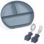 Силіконова трисекційна тарілка 2Life Y21 та металеві прилади Y10 Темно-блакитний з синім (v-11547) (1251247)
