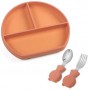 Силіконова трисекційна тарілка 2Life Y25 та металеві прилади Y27 Помаранчевий з коричневим (v-11544) (1251071)