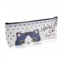 Косметичка Lovely Cat белая в черный горох, с серым котиком, 21*8.5 см (WnC2019-3)