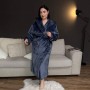 Теплый плюшевый халат - это лучший способ окунуться в комфорт и уют во время холодных ночей. Он удобный, легкий и очень теплый. Модель изготовлена из мягкой, нежной, пушистой ткани, которая прекрасно согревает, имеет хлопковую основу. Не раздражает кожу и проста в уходе. Этот халат имеет глубокий капюшон и большие карманы, что добавляет ему функциональности. Его темно-синий цвет и высокое качество пошива делают его изысканным дополнением к вашему домашнему гардеробу. Рекомендации по уходу: 1. Используйте ручную или машинную стирку в деликатном режиме, при температуре не выше 40с. 2. Не используйте моющие средства, содержащие хлор и кондиционеры. 3. Ткань не мнется, поэтому после стирки не нужно ее гладить, чтобы ворсинки не теряли мягкость.